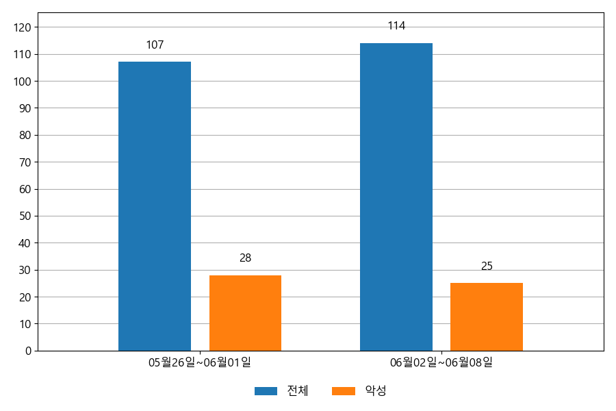 ESRC에서는 자체 운영 중인 이메일 모니터링 시스템의 데이터를 통해 이메일 중심의 공격이 어떻게 이루어지고 있는지 공유하고 있습니다. 다음은 06월 02일~06월 08일까지의 주간 통계 정보입니다.