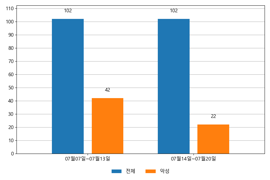 ESRC에서는 자체 운영 중인 이메일 모니터링 시스템의 데이터를 통해 이메일 중심의 공격이 어떻게 이루어지고 있는지 공유하고 있습니다. 다음은 07월 14일~07월 20일까지의 주간 통계 정보입니다.
