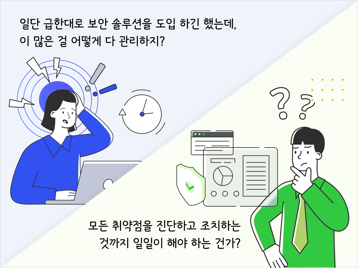 보안 관리자는 다양한 OS와 디바이스 등 확대된 보안 관리 범위에 대해 일관된 보안 관리를 적용해야 합니다. 이러한 과정에서 여러 보안 제품을 동시에 관리하는 복잡성이 증가할 수 있는데요. 그래서 ASM과 같은 통합 보안 관리 솔루션을 사용하여 중앙에서의 통합 관리로 빠르고 효율적인 대응을 해야 합니다.