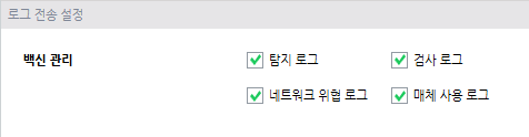 수집할 사용자 PC 정보와 제품 로그 설정이 가능합니다.