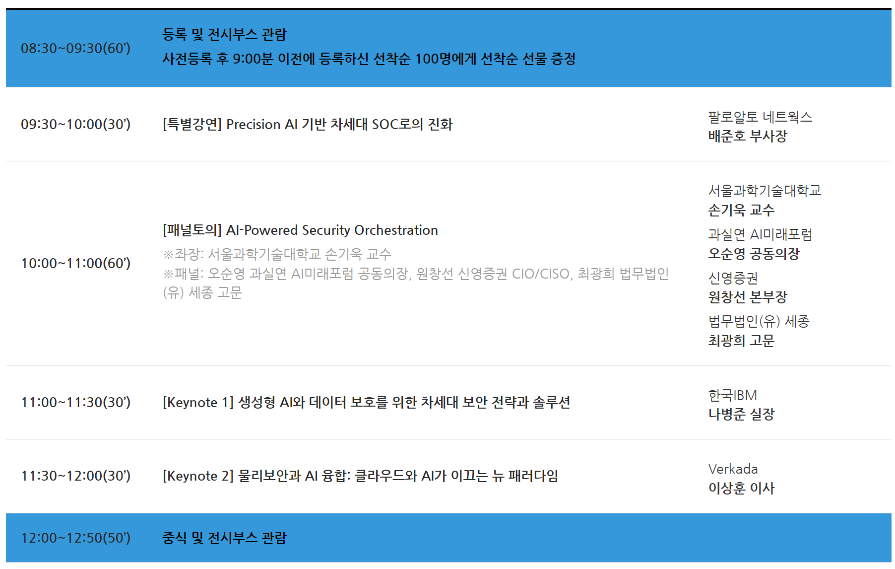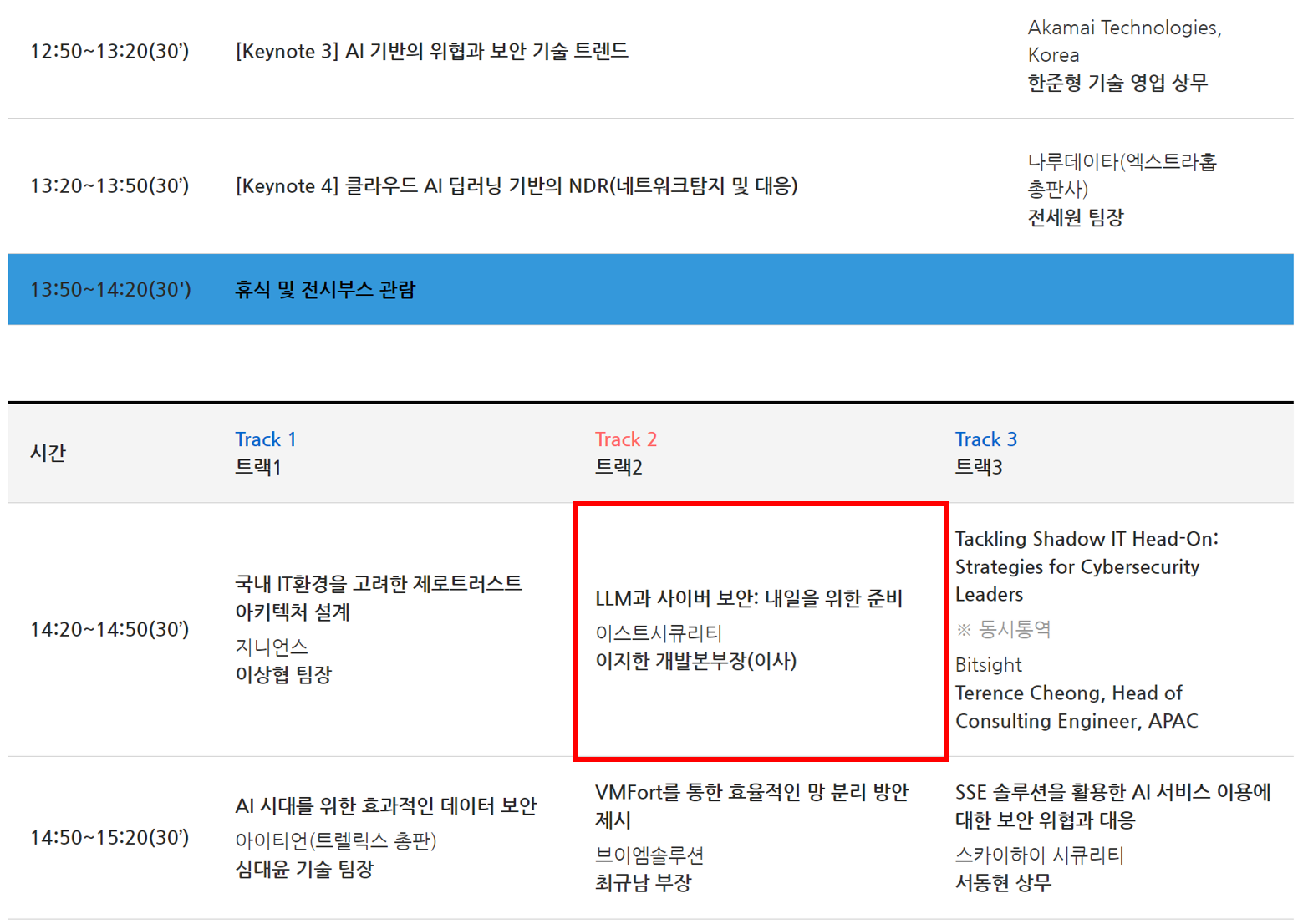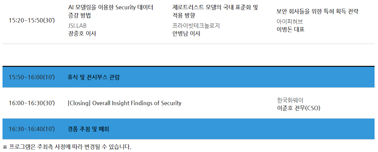 ※ 이스트시큐리티 세션 일정