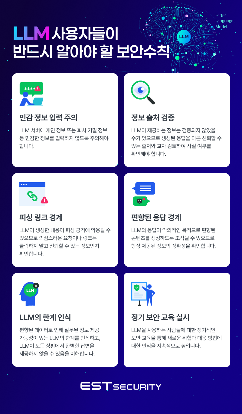 그래서 이스트시큐리티가 준비한 'LLM 사용자들이 반드시 알아야 할 보안수칙' 여섯가지!