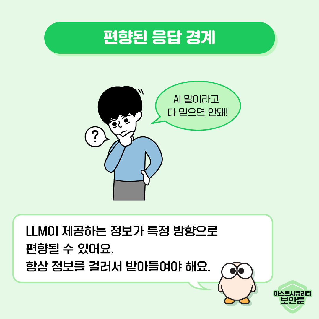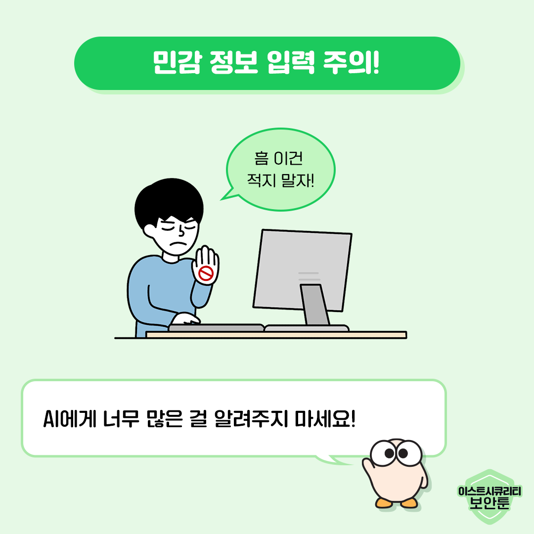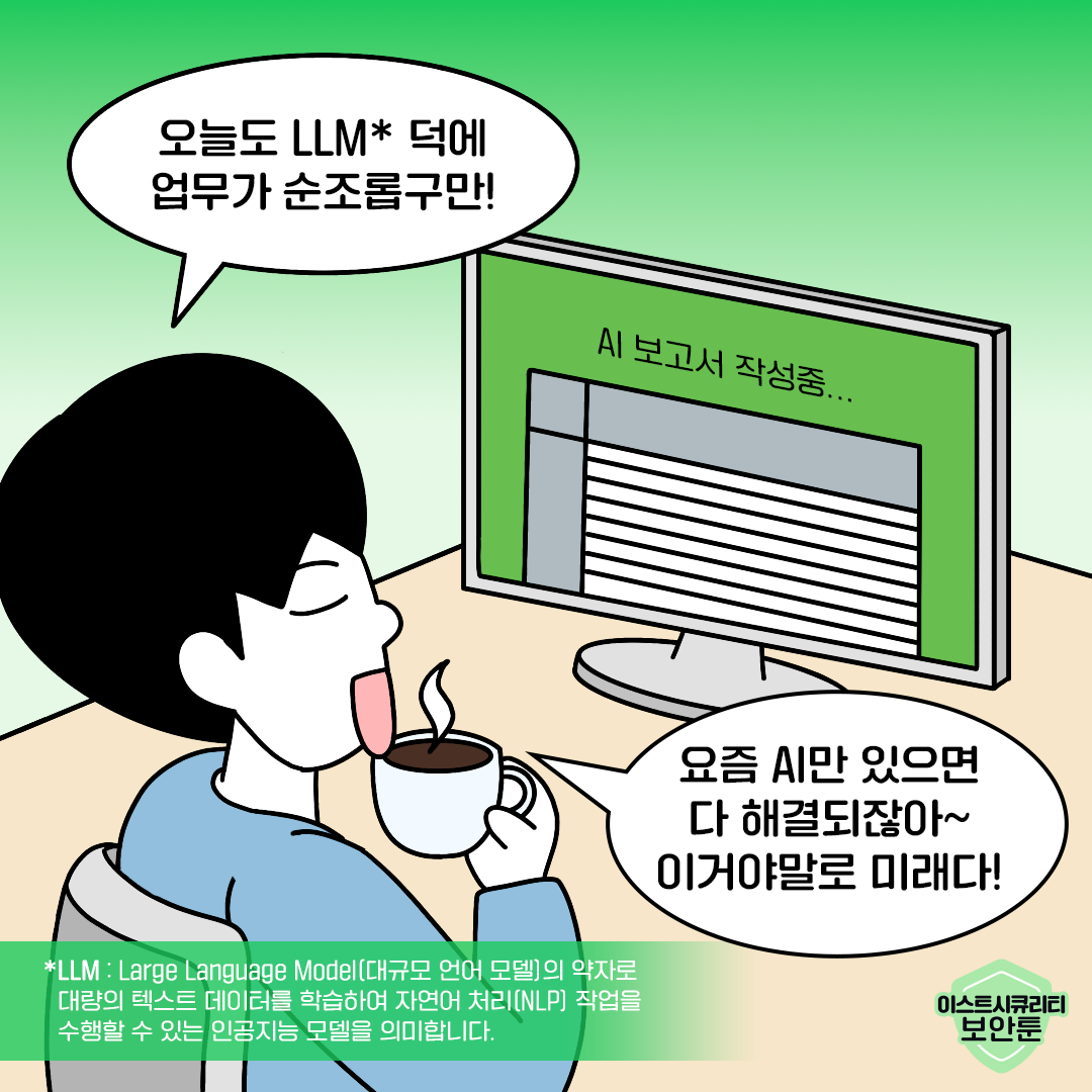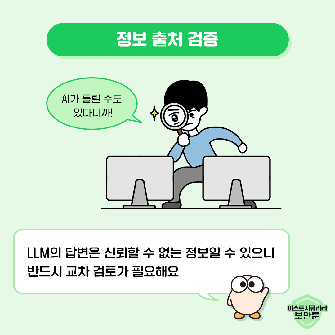 생성형 AI가 편리하다는 이유로 기밀 데이터 유출 위험을 간과하고 있지 않으신가요? 지금 바로 LLM을 통해 발생할 수 있는 보안 위협을 확인하고, 이스트시큐리티가 제공하는 LLM 사용 보안 수칙을 숙지하여 보다 안전하게 AI 사용 환경을 구축해보세요!
