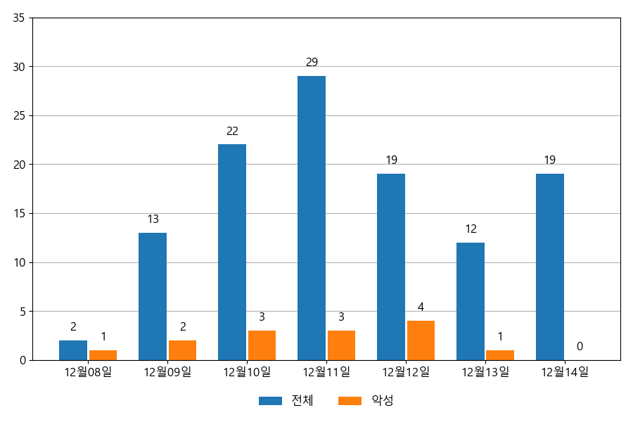 일일 유입량은 하루 최저 2건(악성 1건)에서 최대 29건(악성 4건)으로 일별 편차를 확인할 수 있습니다.