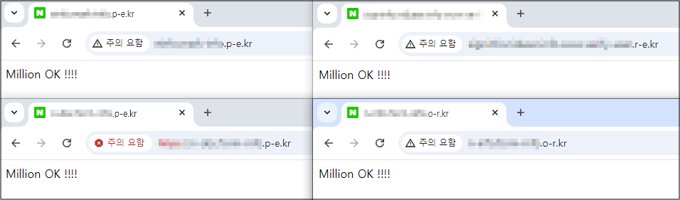 피싱 페이지들은 o-r.kr, r-e.kr, p-e.kr 도메인을 사용하였습니다.