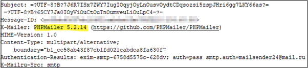 해당 피싱 메일은 공격자들이 대량으로 피싱 메일을 발송할 때 자주 사용하는 PHPMailer를 통해 발송되었습니다.
