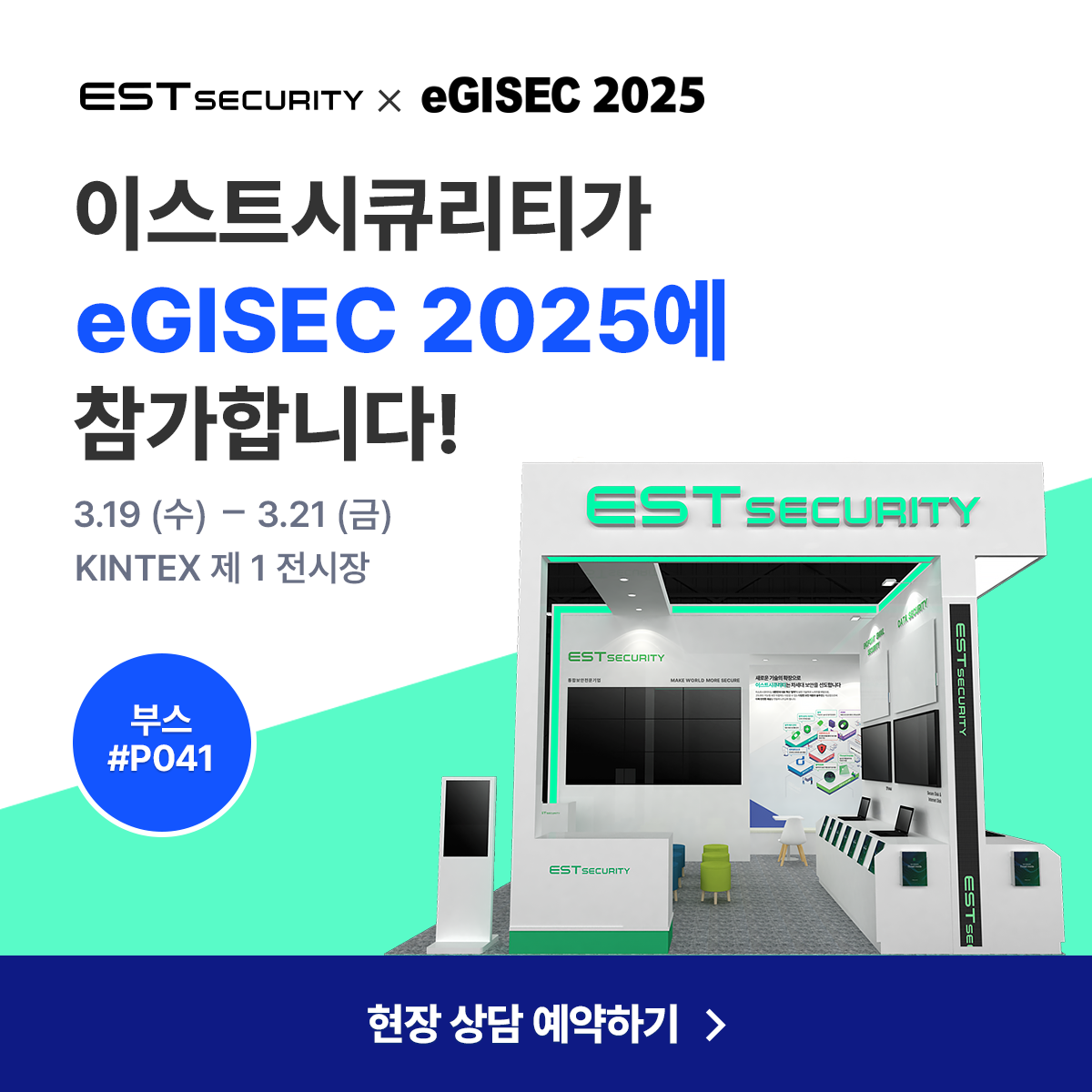통합 보안 전문 기업, 이스트시큐리티가 오는 3월 19일(수)부터 3월 21일(금)까지 일산 KINTEX에서 개최되는 eGISEC 2025 전자정부 정보보호 솔루션페어에 참가하여 기업 고객을 위한 더욱 강력한 보안 대응 전략을 제시합니다!