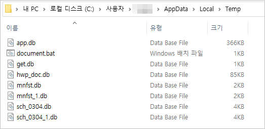 | hwp_doc.db | %TEMP% | 정상 지원서 파일 | paper.hwp | %TEMP% |