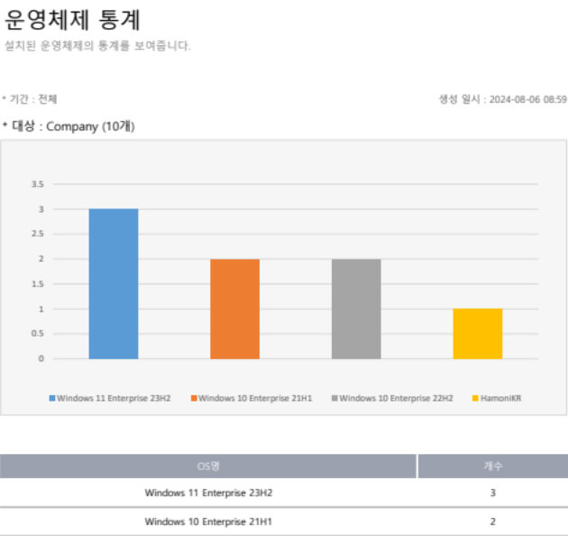 사용자 PC의 운영체제 및 소프트웨어 정보 등 자산관리에 대한 정보가 담긴 보고서를 제작할 수 있습니다.