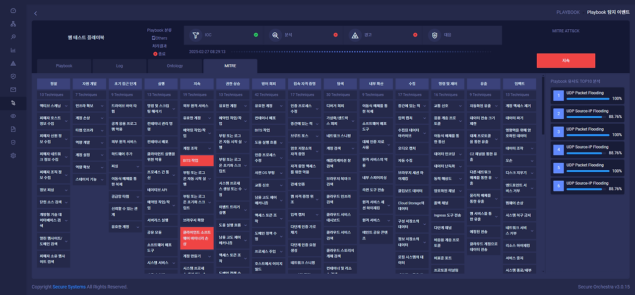 ✅ 공격 가시성 확보: MITRE ATT&CK 매트릭스를 통해 탐지된 위협의 전술과 기법을 명확히 분류