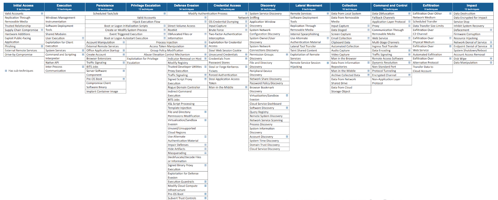 각 전술 아래에는 수십 개의 구체적인 공격 기술과 세부 방법이 매핑되어 있어,공격자가 어떤 방법을 사용했는지 단계별로 명확히 파악할 수 있습니다.