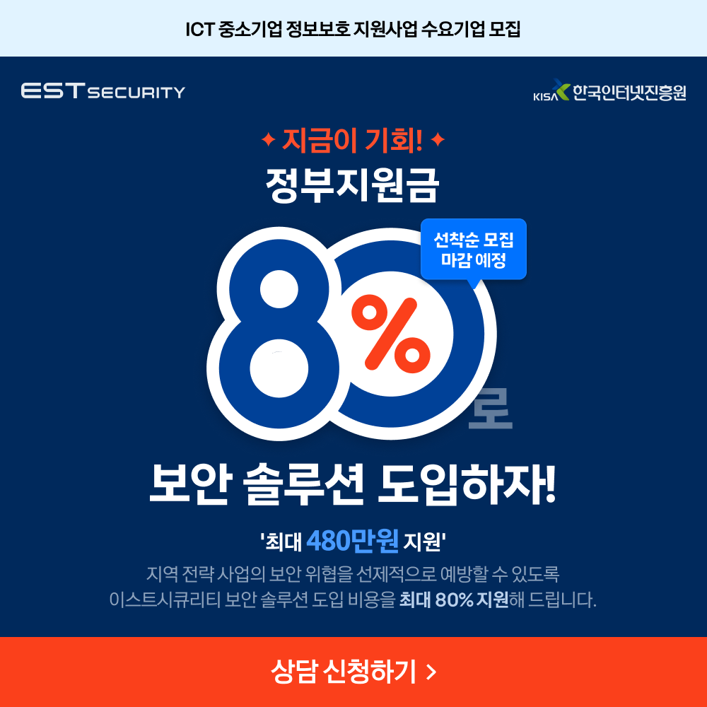 ✅ 보안 솔루션 도입 비용, 최대 80%까지 지원!