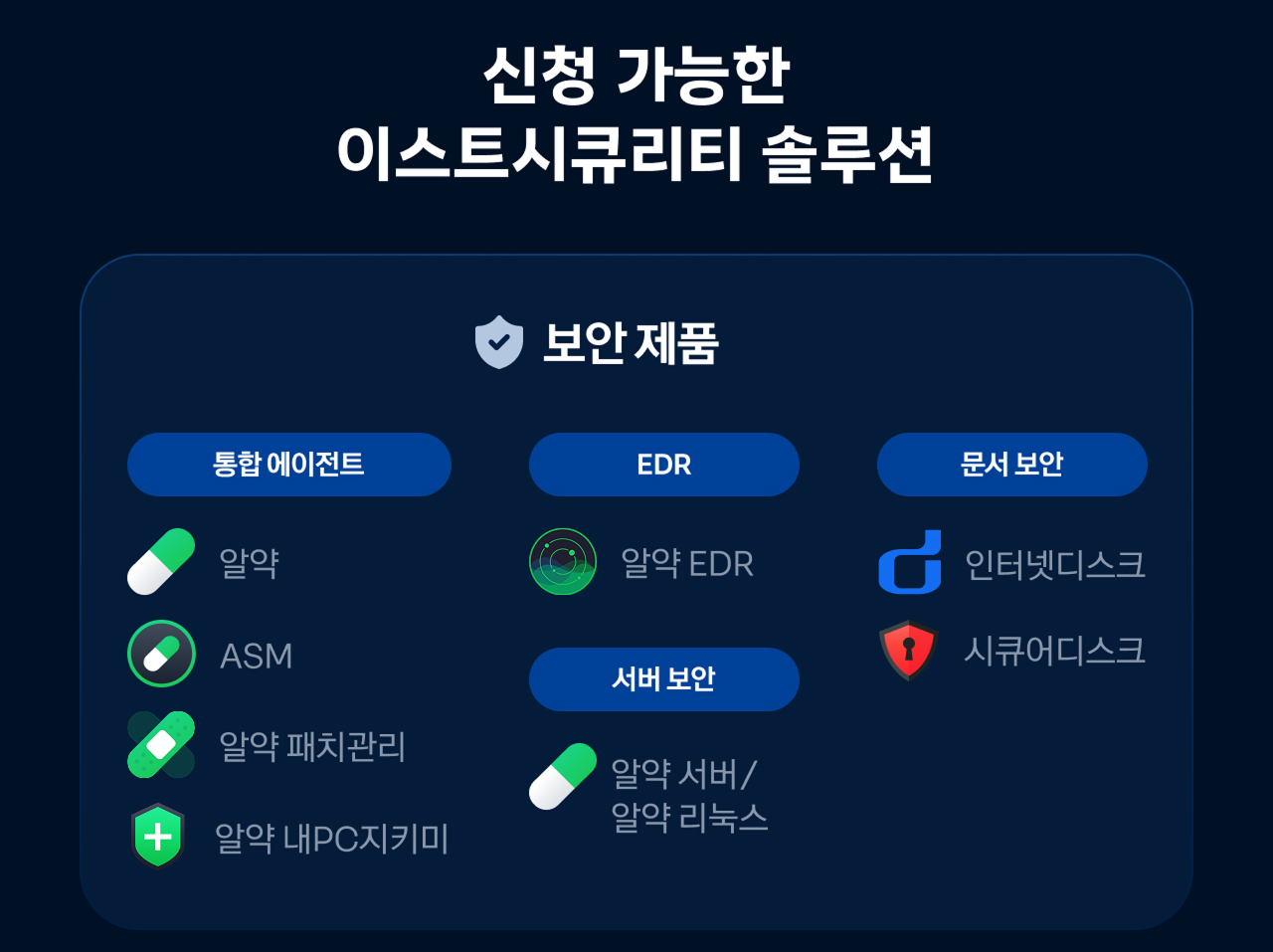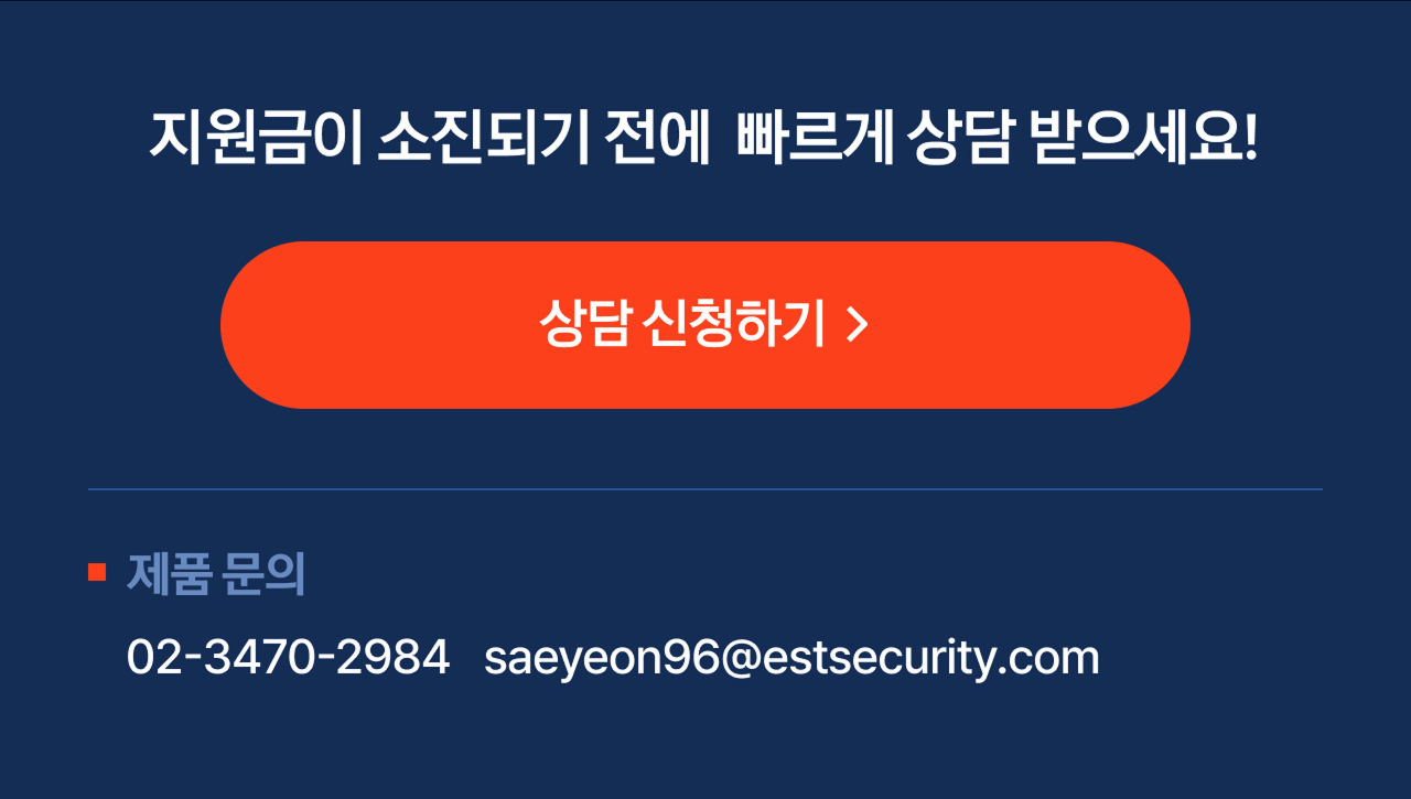 중소기업의 보안 수준을 끌어올릴 수 있는 정부 지원 기회는 매년 한정적입니다. 이번 기회를 통해 도입 비용 부담 없이, 랜섬웨어·APT 등 최신 보안 위협에 선제적으로 대응하세요.