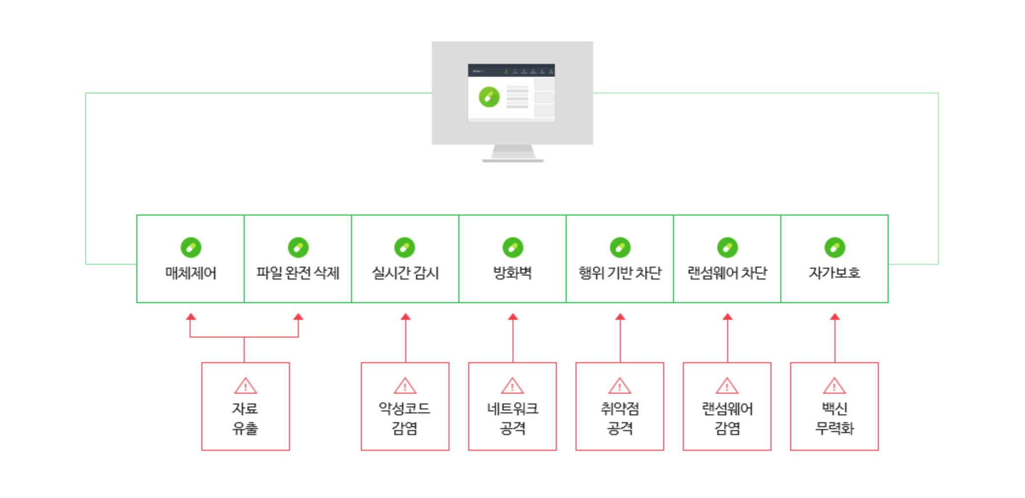 알약 5.1은 커널 수준에서 이루어지는 악성 행위까지 모니터링할 수 있어 루트킷 같은 은폐형 위협에 선제 대응이 가능하며, 보안 센터 및 로그 기반 자동 분석 기능으로 기업 보안 환경을 효율적으로 관리할 수 있습니다.