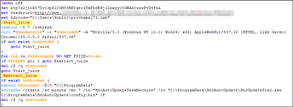 이후 LhUdPC3G.bat 파일을 동일한 폴더에 다운로드한 뒤 숨김 창으로 실행합니다.