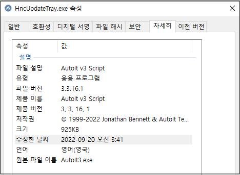 HncUpdateTray.exe는 정상 AutoIt3 실행 파일로, 동일 폴더에 있는 컴파일된 config.bin 파일을 로드하여 실행합니다.