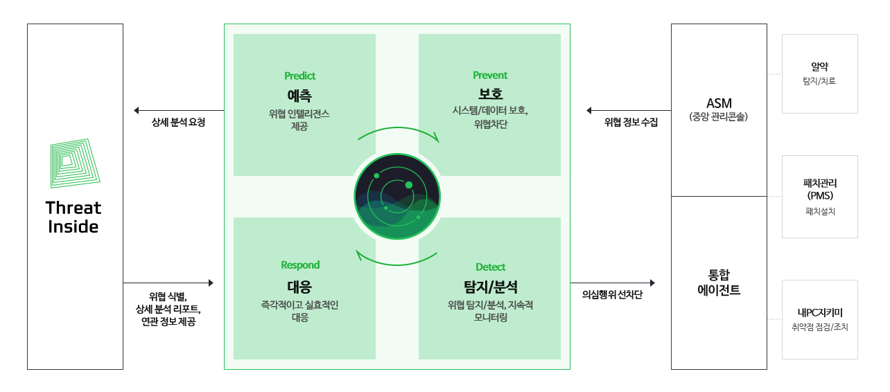 - ASM(알약 시큐리티 매니저) 연동으로 정책·알림·로그 분석 통합 관리