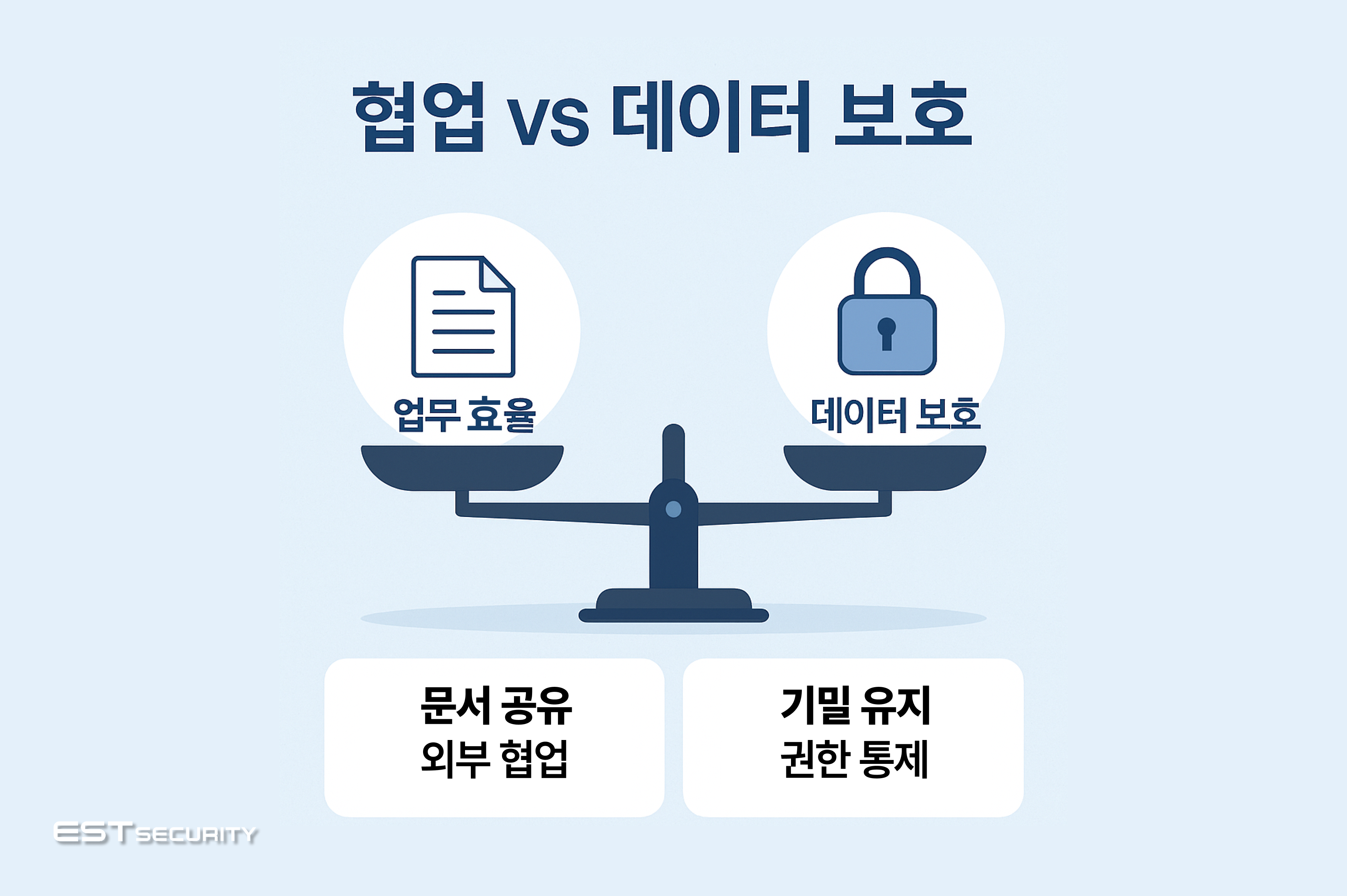 즉, 기업은 업무 효율성과 데이터 보호라는 두 가지 상충되는 목표를 동시에 달성해야 하는 과제를 안고 있습니다. 협업을 위해 보안을 느슨하게 하면 유출 위험이 커지고, 보안을 지나치게 강화하면 협업과 업무 생산성이 저하됩니다. 따라서 균형 잡힌 보안 체계가 무엇보다 중요합니다.