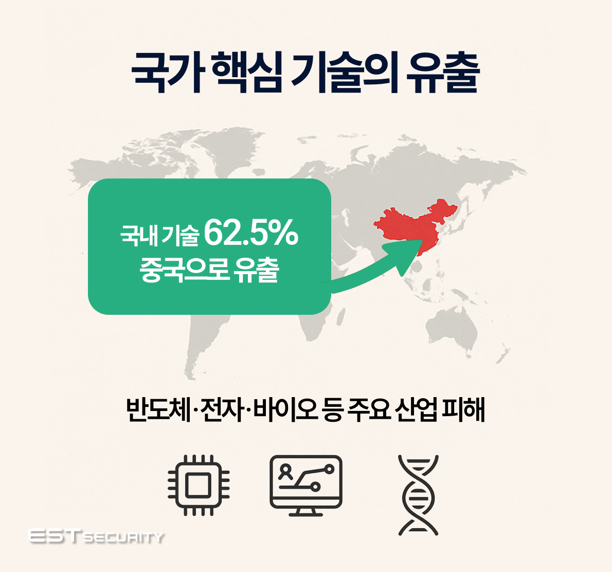 또한 산업기밀 유출 역시 심각합니다. 2025년 상반기 기준 해외로 유출된 기술 사건 중 62.5%가 중국으로 흘러간 것으로 조사되었으며, 반도체와 전자 등 핵심 산업 분야에서 피해가 집중되었습니다. 단일 기업의 문제를 넘어 국가 경쟁력 전체에 위협이 될 수 있음을 보여줍니다.