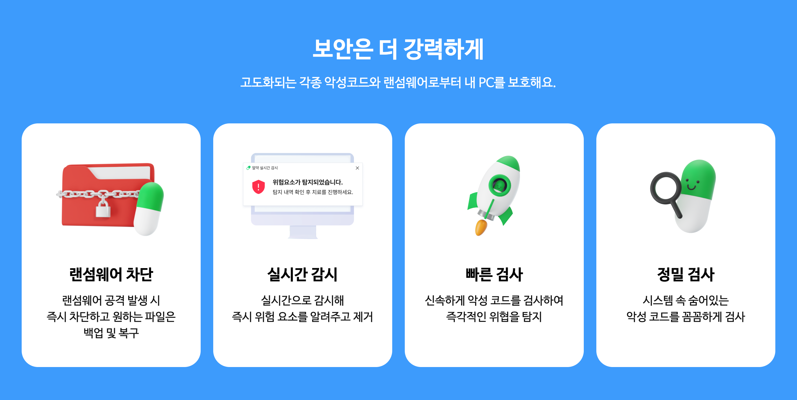 - 정밀·예약 검사로 숨어있는 악성코드 및 위협 제거