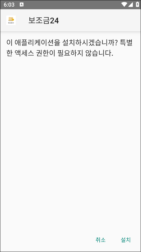 해당 악성 앱은 설치 과정에서 특별한 권한이 필요하지 않은 것처럼 안내하지만, 실제로는 앱 실행 시 사용자 기기 내 정보 수집과 외부 서버와의 통신을 위해 다양한 권한을 요구합니다.