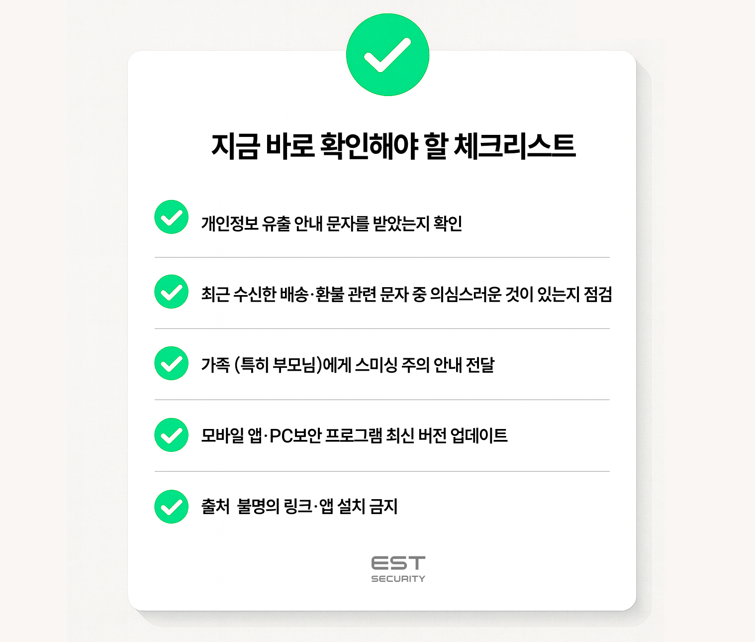 이 사건은 특정 기업의 문제라기보다는, 개인정보 유출이 발생했을 때 누구나 겪을 수 있는 다양한 2차 공격 위험을 다시 한번 상기시키는 사례입니다. 특히 스미싱·피싱 공격이 정교해지고 있는 만큼 사용자 여러분의 각별한 주의가 필요합니다.