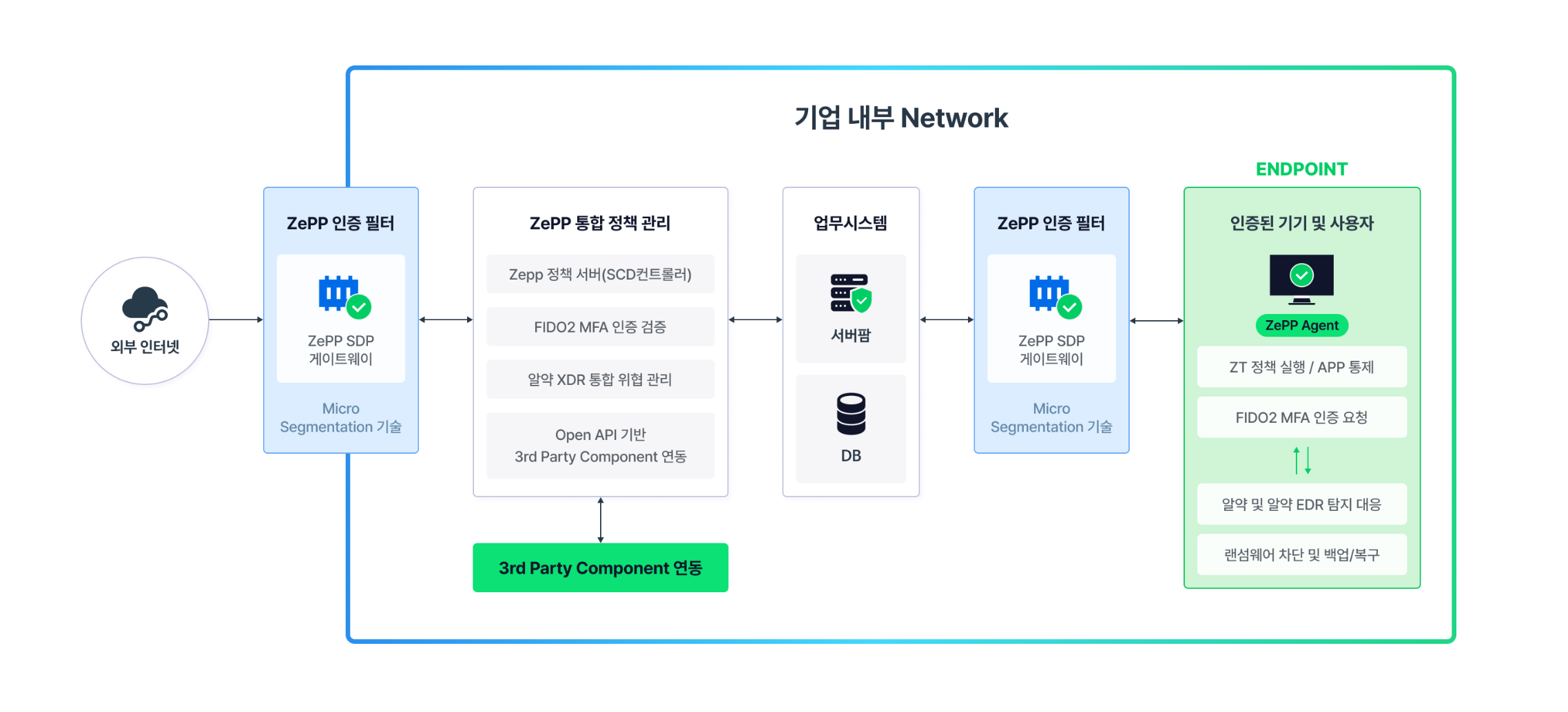 A. 알약 ZePP는 기존 알약·알약 EDR 위에 제로트러스트 접근 제어 계층을 얹는 구조입니다. 기존 엔드포인트 보안 투자를 그대로 활용하면서, SDP·마이크로 세그멘테이션·신뢰도 기반 정책까지 확장할 수 있어 추가 도입 부담을 최소화할 수 있습니다.